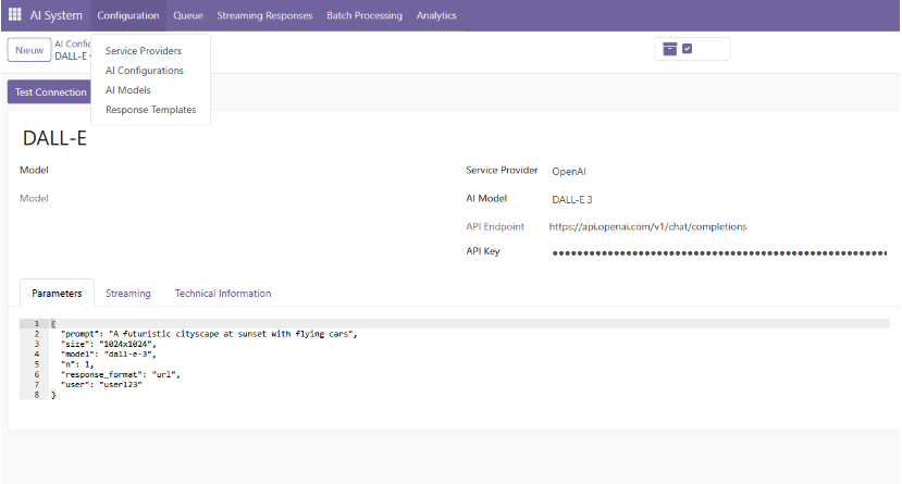 De AI Core Module in Odoo zorgt ervoor dat alle AI-verzoeken automatisch en efficiënt worden verwerkt. Wanneer een gebruiker een AI-gestuurde actie uitvoert, zoals het genereren van een tekst, analyseren van gegevens of aanmaken van een AI-gegenereerde afbeelding, wordt het verzoek achter de schermen afgehandeld via een wachtrij (queue).